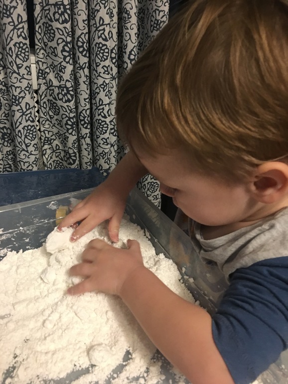 Немного повозились с волшебным снегом в коробочке