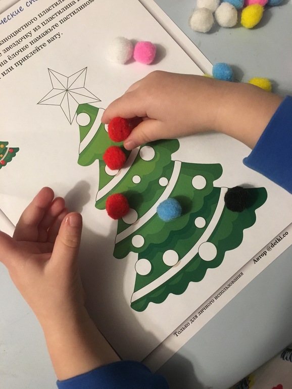 Потом раскрашивали ёлочные шарики в соответсвии с цветами