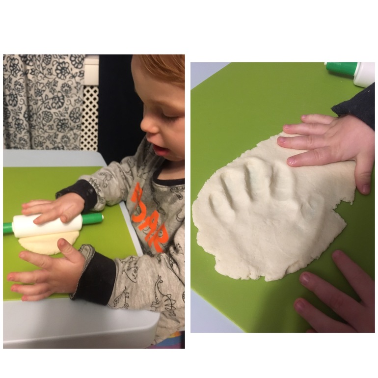 Больше всего Ване нравится раскатывать тесто скалкой. Оно долго сохнет, поэтому раскрашивать и декорировать мы будем через недельку.