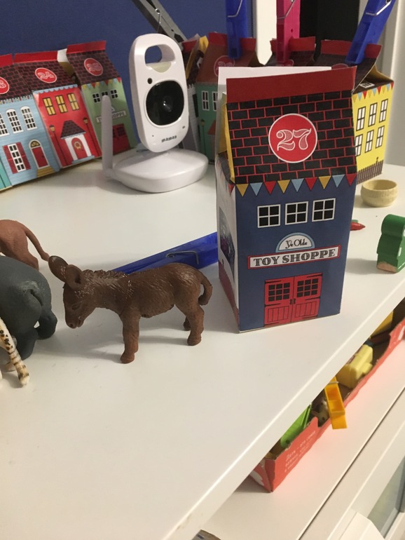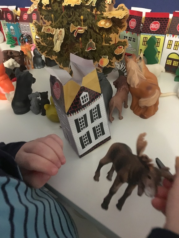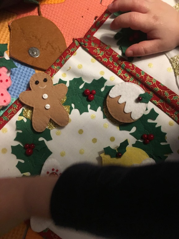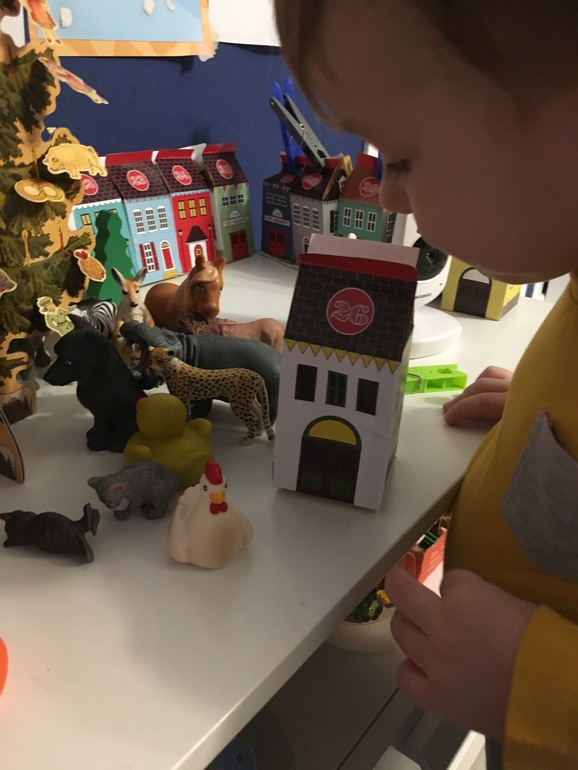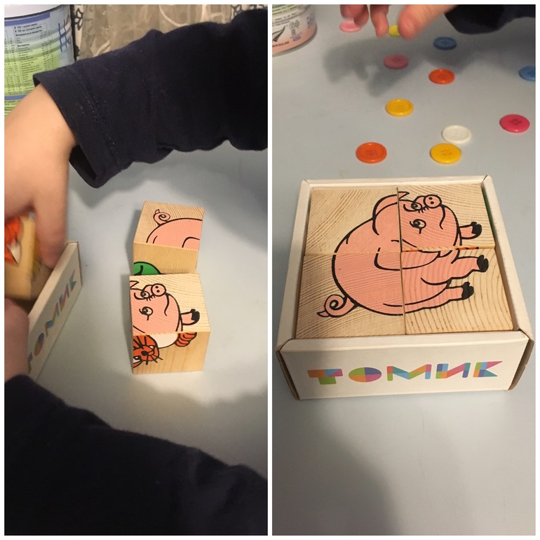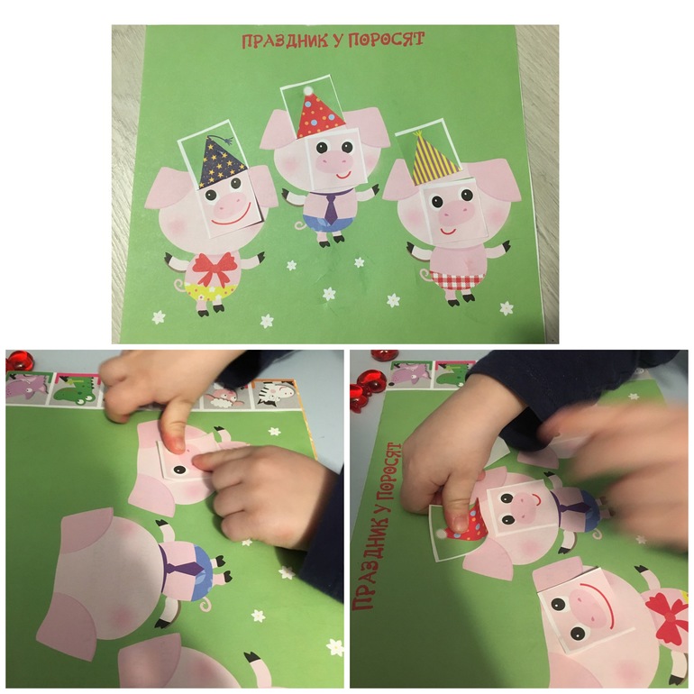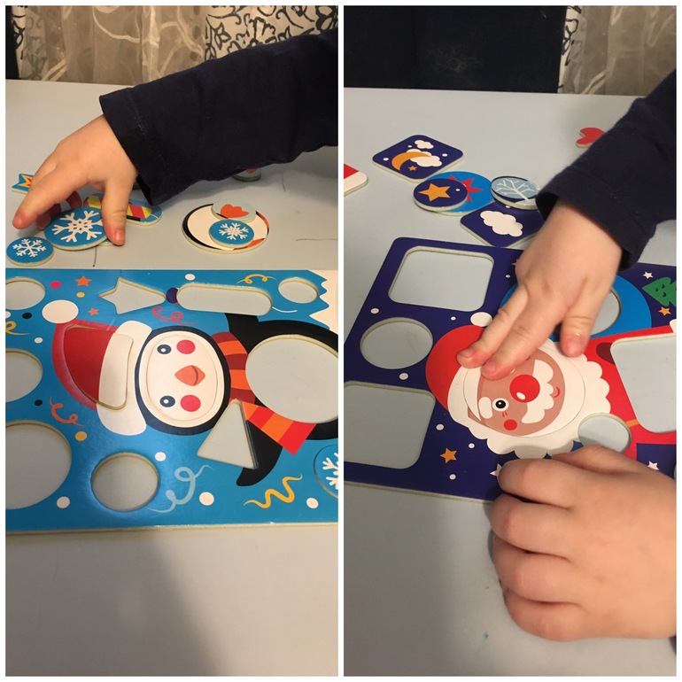 В домиках лежали мармеладки и игрушки для ёлочки. Ваня сам выбирал, что хочет делать. Пособирал магкие пазлы
