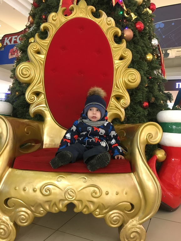 Себе Ваня примерил шапку Деда Мороза с бородой, но как только я начинала фотографировать - скидывал с себя. Очень не любит это дело(((