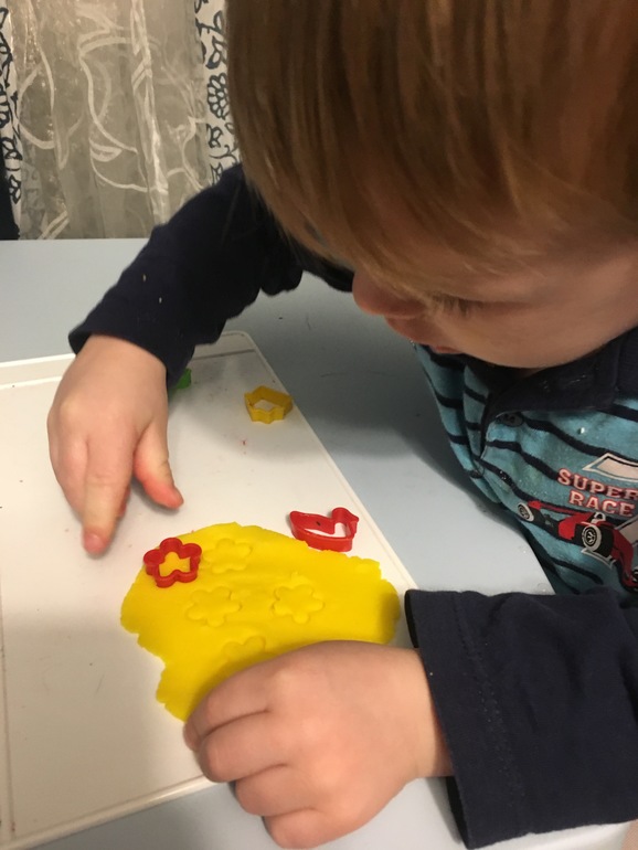 Наше любимое занятие. Ване очень нравится формочками делать печенье из теста