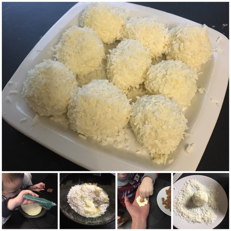 Приготовили любимые папины снежные конфеты-рафаэлки. Ваня активно принимал участие в приготовлении