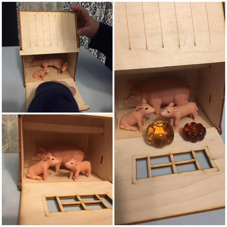 Ваня принес домик с «фермы», в котором у нас живут свинки. Накормил их тыквой)