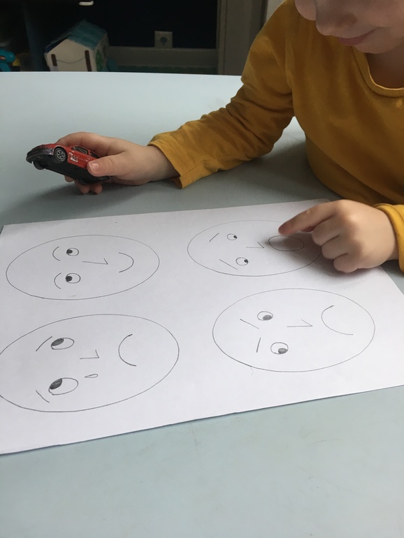 Овальной формы еще бывает лицо. Предложила несколько картинок с разными эмоциями - определяли нужную