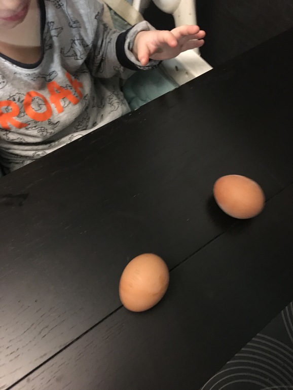 Сравниваем 2 яйца - сырое и вареное. Крутим оба. Видим отличия - одно вращается быстро, другое - тяжело и медленно.