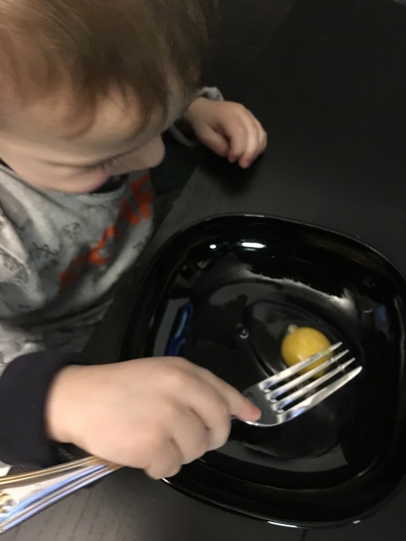 Разбиваем яйцо. Дед и баба били-били и не разбили, а у Вани получилось. Смотрим желток и белок.