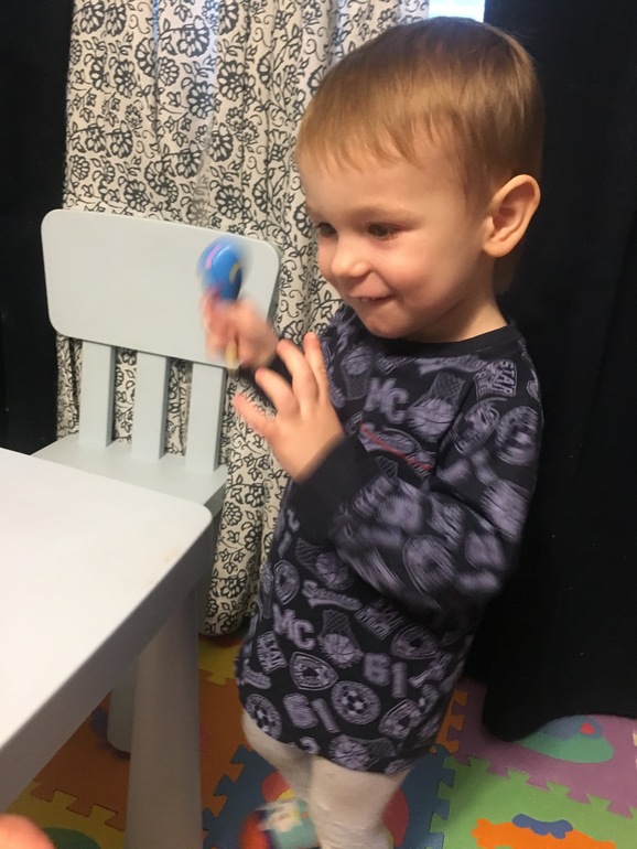 Прослушали песенку «Цып-цып, мои цыплятки». Ваня подыграл маракасами.