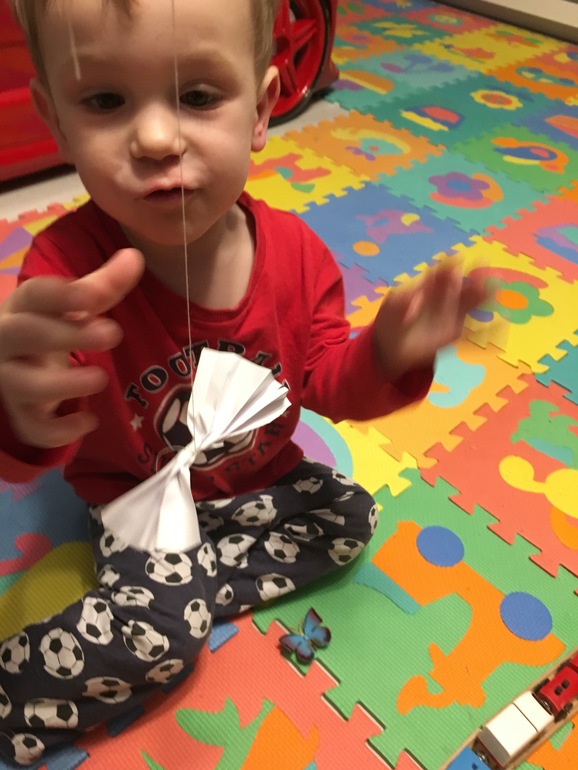 Дыхательная гимнастика - дуем на мотылек, чтобы он полетел.