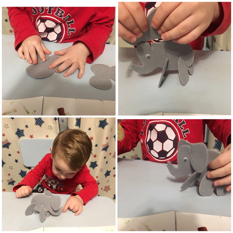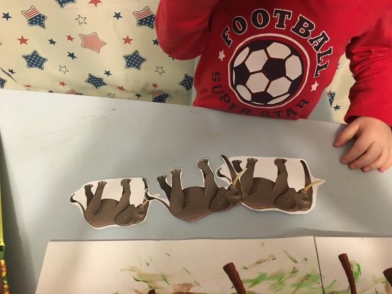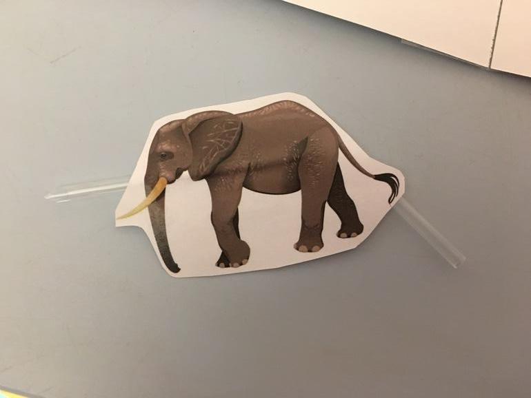 Смотрим части слона (бивни, хобот, размер). С помощью хобота слон пьет воду. Сделала трубочку