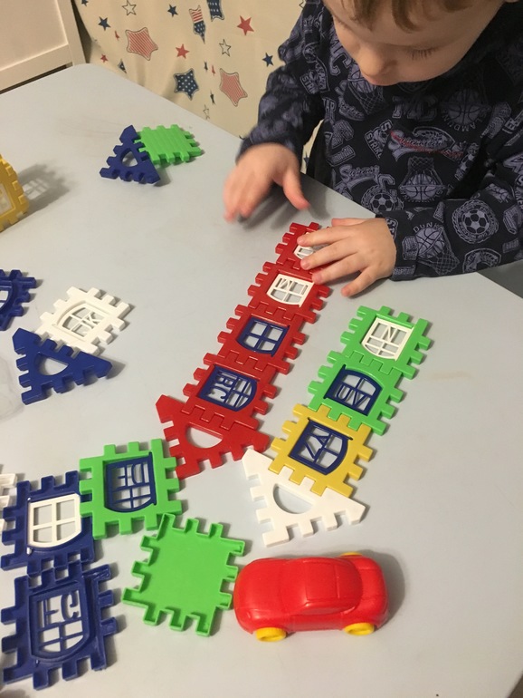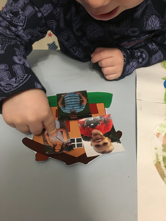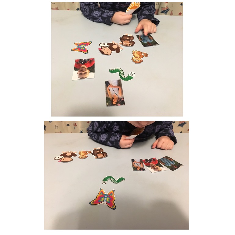 Составляем три семьи: обезьянки, мотылька и наша. Собираем картинки.