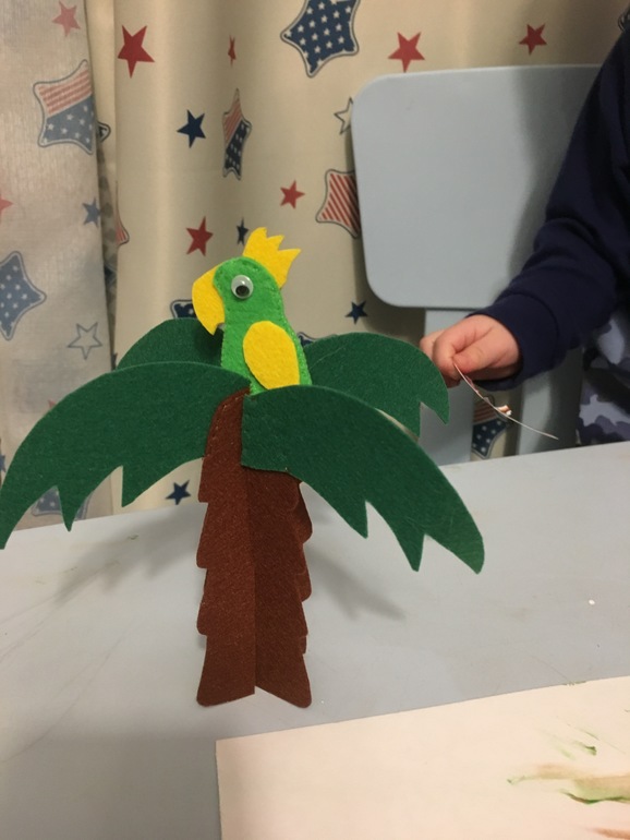 Собираем фетровую пальму и сажаем на нее попугая из фетра