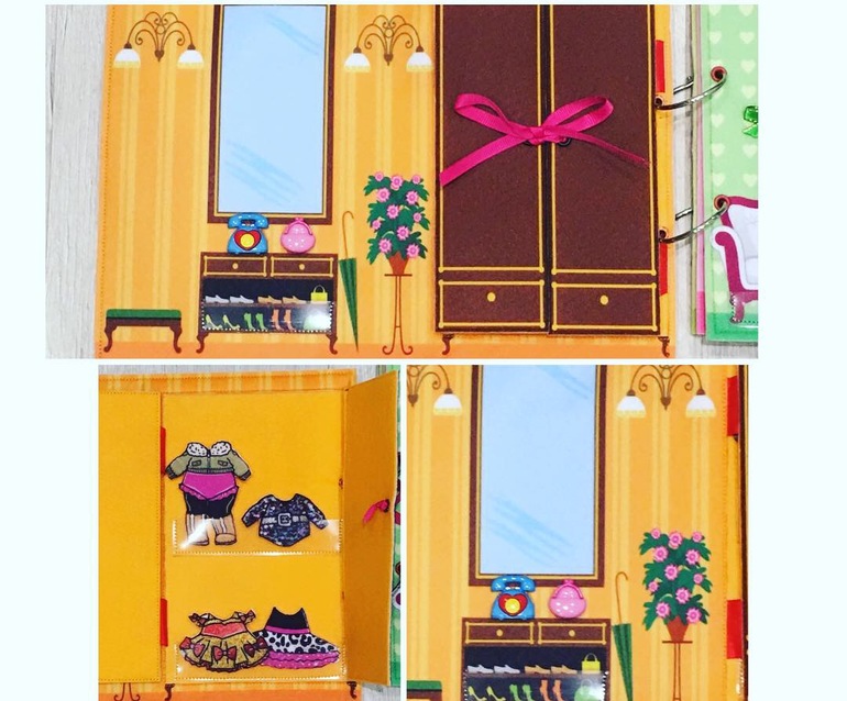 В домике живут 3 персонажа. У взрослой девочки есть несколько нарядов, которые крепятся к телу с помощью магнитов.