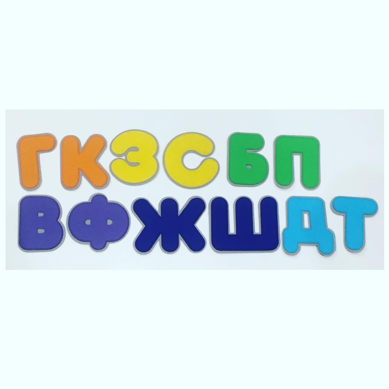 9)найди буквы одного цвета (ребенок ищет буквы, параллельно объясняем, чем гласные звуки отличаются от согласных, звонкие от глухих, парные от непарных);