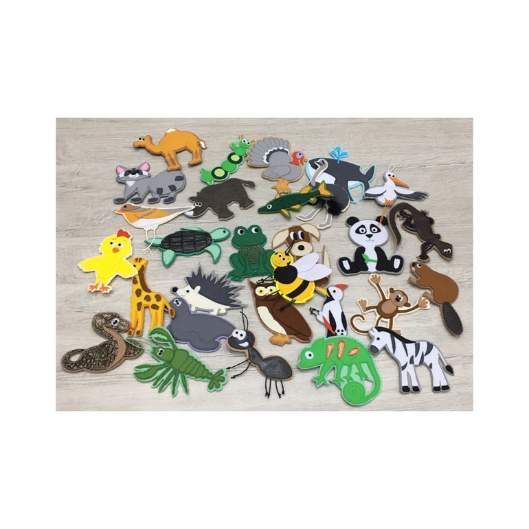 Это супертактильные карточки размером 13*13 см. На лицевой стороне карточки "домик", к которому нужно подобрать животное (на магните). Сзади на липучку крепится буква, на которую начинается название этого животного. В наборе 29 карточек с домиками и животными и 43 буквы (чтобы можно было сложить названия всех животных).