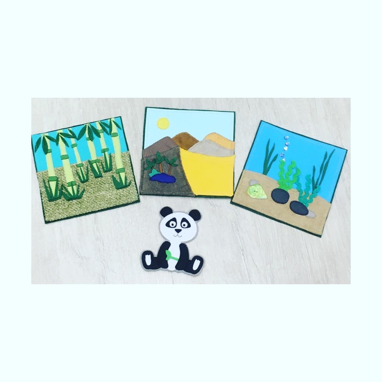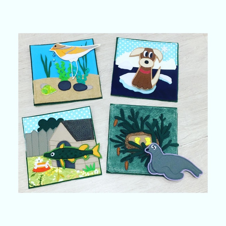 В проекте использовано более 30 оттенков фетра, более 50 видов тактильных тканей, а так же различные материалы, чтобы сделать игру интереснее (пуговицы, бусины, ленты, шнуры, перья и тд)