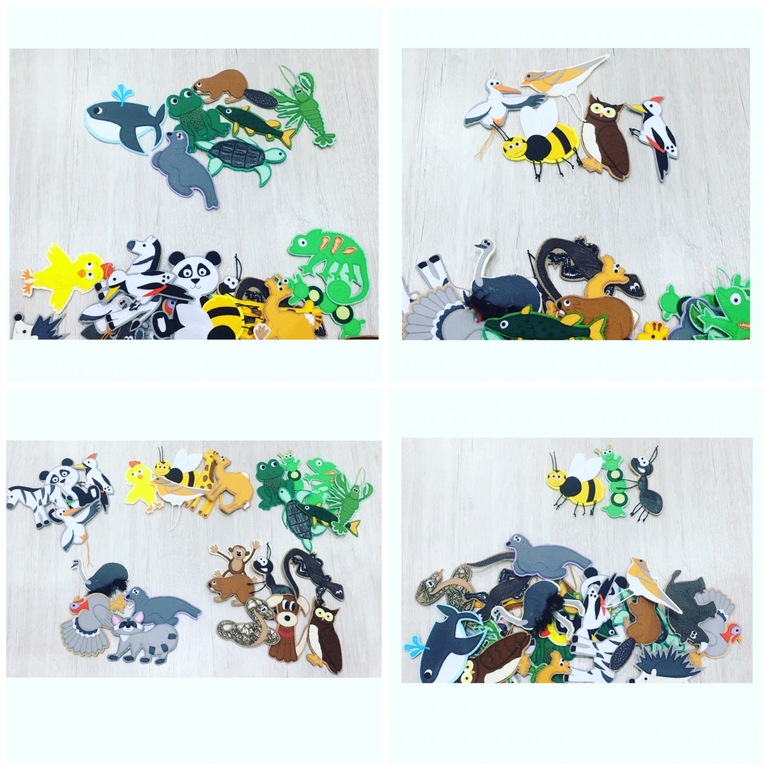 3)группируем животных (раскладываем по тематическим группам: животные-птицы-насекомые-рептилии, летают-плавают-бегают, живут на дереве-в водоеме-на земле, дикие-домашние и т.д.; раскладываем по цветам);