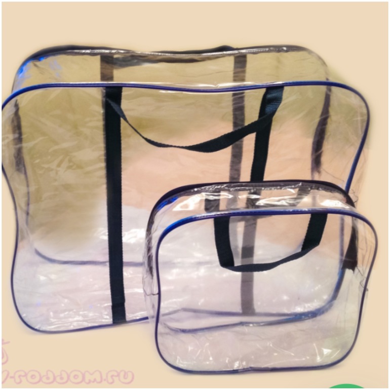 Все вещи упаковываем в прозрачную сумку. У меня была большая для вещей после родов и маленькая - для вещей, которые брала в родильное отделение. Сумку покупала здесь http://skoro-v-roddom.ru/collection/cumka-prozrachnaya/product/sumka-prozrachnaya-v-roddom