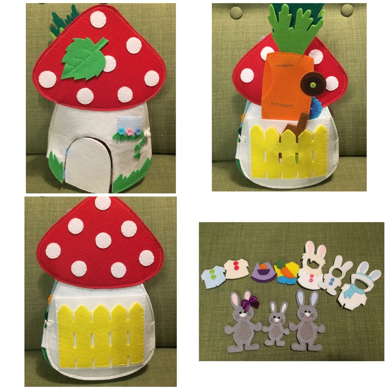 По мимо сюжетно-ролевой игры здесь много развивающих элементов: развитие мелкой моторики (кнопки, липучки, пуговки, прищепки, петельки), цвета, фигуры, цифры, счет, простейшие математические действия, пространство (лево-право, вверх-вниз), время (день-ночь).