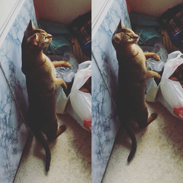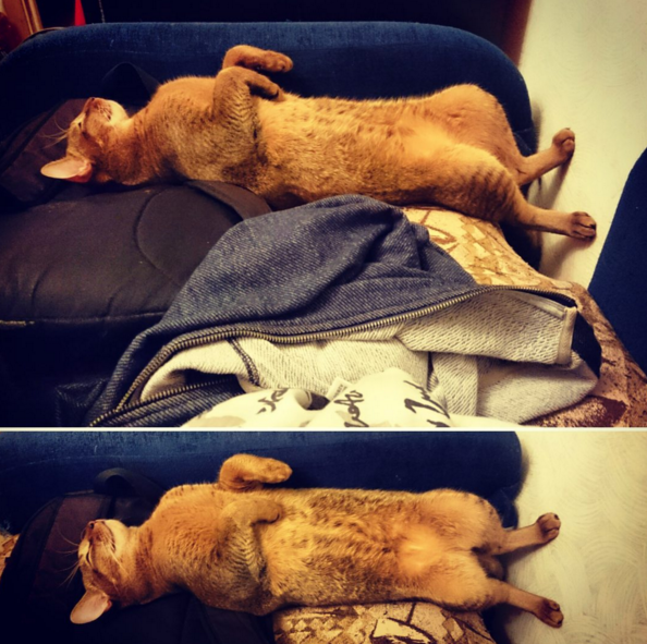 Забрали ее с котенком, мальчиком. Сейчас он больше своей мамы, так как папа у кота был чистокровный абиссинец. Кота же зовут Коржик. Он у нас глупышка, ибо юный.