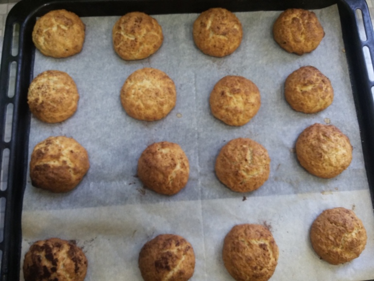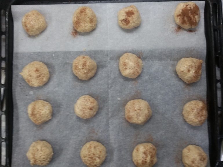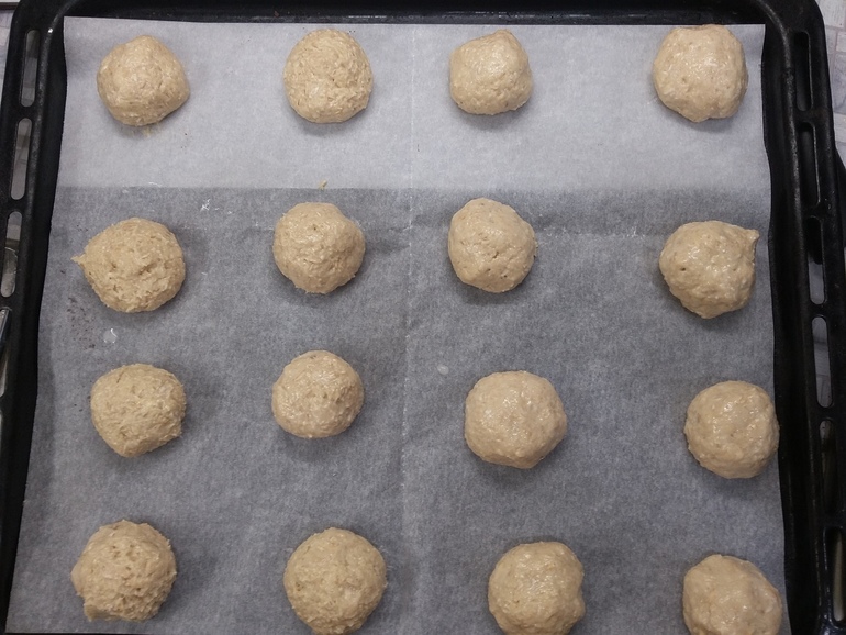Разделить тесто на шакрики размером с грецкий орех. Разложить на противне: