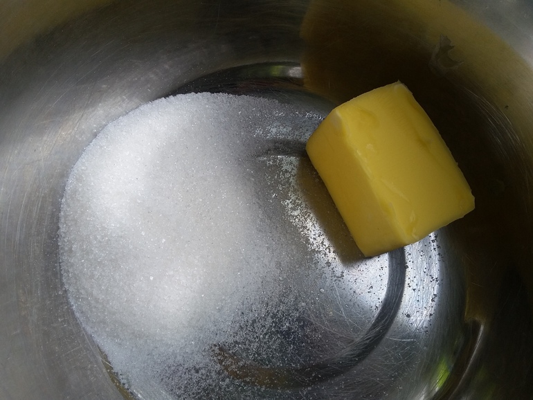 Всыпать в миску 150 г сахара и 150 г мягкого сл.масла: