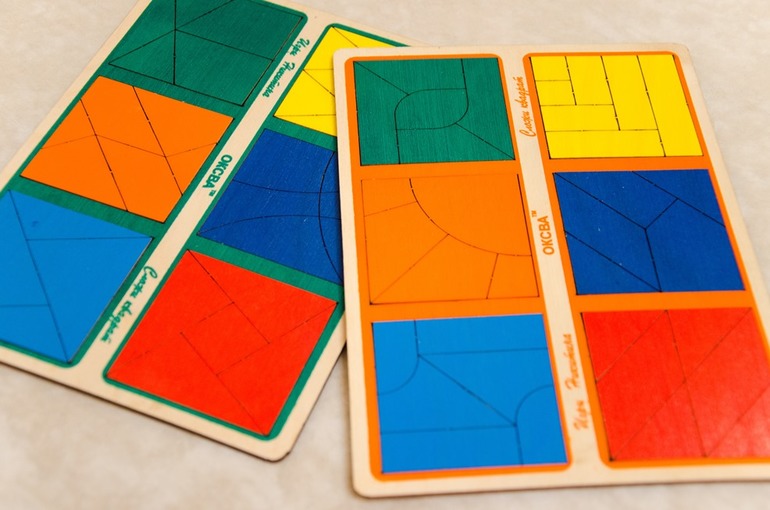 А еще Настя всерьез полюбила никинскую игру "Сложи квадрат". Легко справляется со вторым уровнем в разных вариациях, начала собирать третий.
