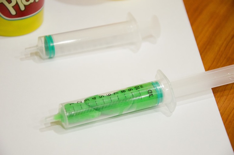 а еще мы тут новую пластилиновую технику решили попробовать. Делать аппликации с помощью выдавливания пластилина из шприца. По задумке, нужно поместить колбаску из пластилина в шприц без иглы, положить шприц на несколько минут в горячую воду...