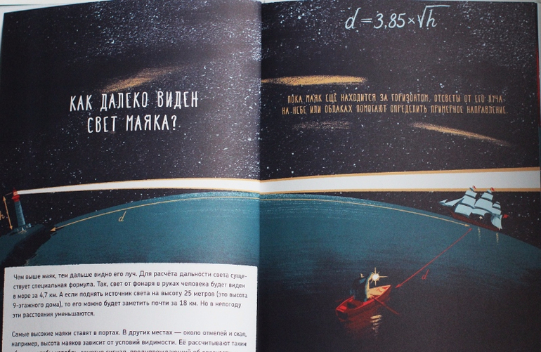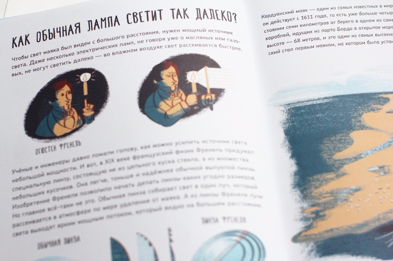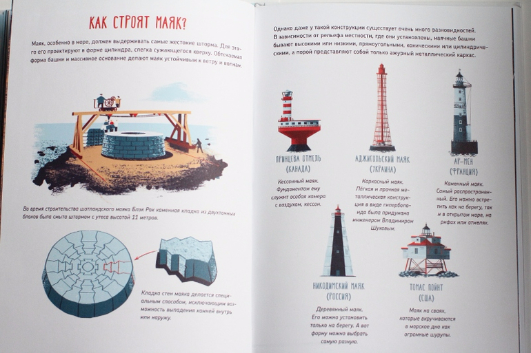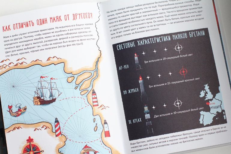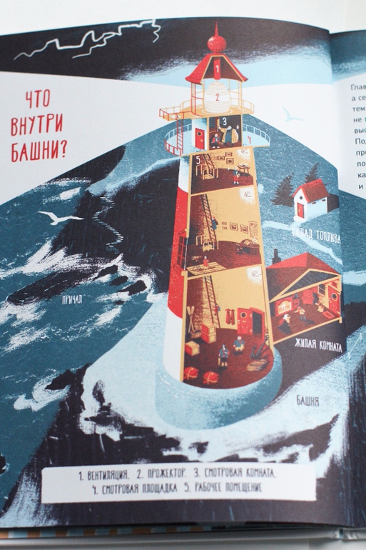 столько интереснейших подробностей, о которых я даже не задумывалась. Тема рассмотрена со всех возможных сторон - мы с сыном узнали, как устроен маяк изнутри, почему он светит так далеко, какими были маяки раньше, как их строят, какие места подходят для них, какие бывают типы маяков, как корабли отличали один маяк от другого в темноте.. А моя любимая глава - о работе маячников, о том, как они живут на маяках и в чём именно состоит их работа :) Кто-нибудь ещё временами мечтал стать смотрителем маяка?*)