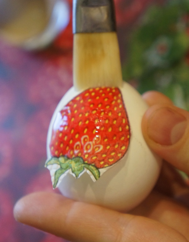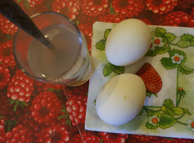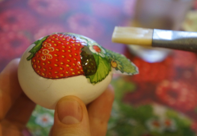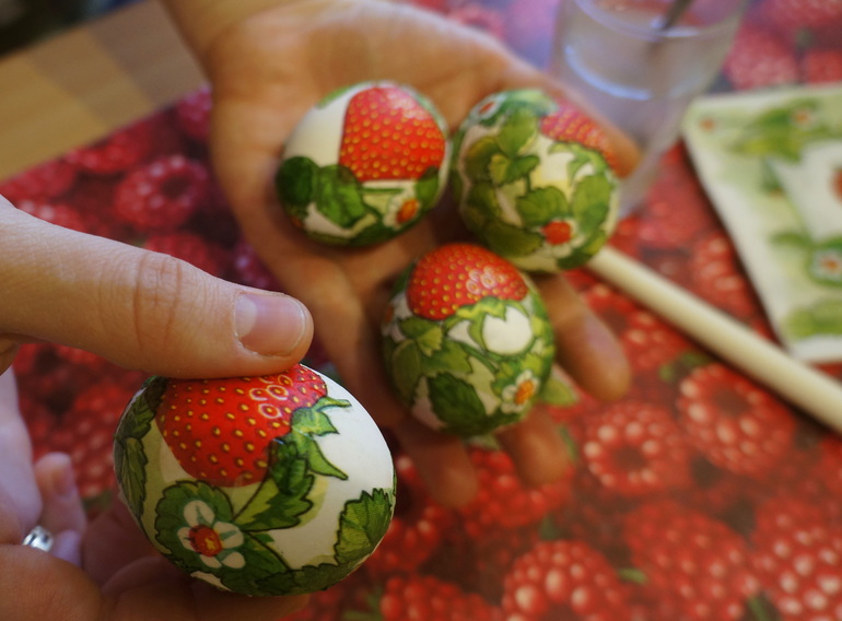 Вам потребуется- салфетки бумажные, ножницы, чайная ложка крахмала, стакан кипятка, ложка, кисть, вареные яйца.