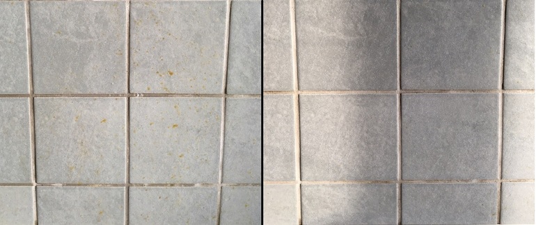 Жир над плитой отмыл на ура! Пшик-пшик, ждем минуту, трём губкой (в перчатках!), протираем влажной тряпкой и готово!