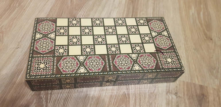 нарды на крышке косячок маленький пятнышко и замочек не работает. все остальое без нареканий. экв 1700.