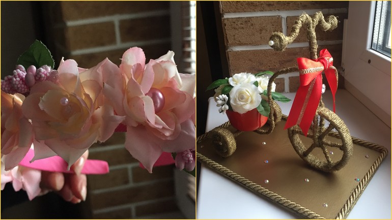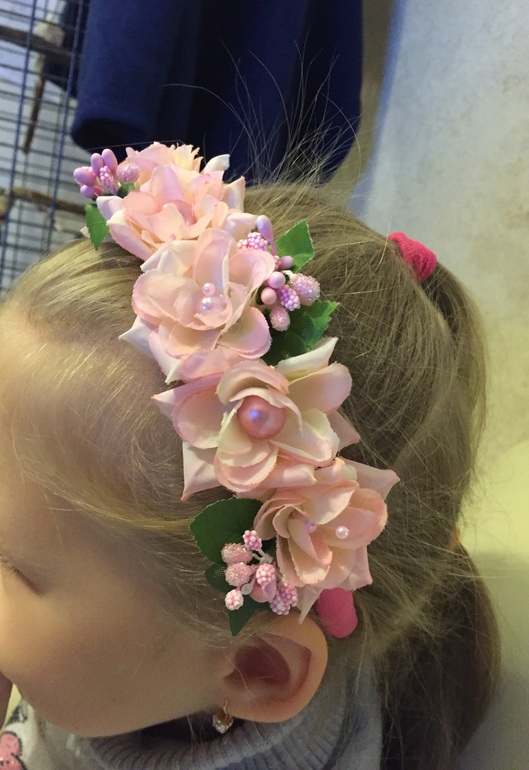 Сваяла ободок розовый на заказ и белый для дочки+к нему брошка на платье) для выступления на утреннике, но и велосипед из проволоки с корзиной цветов в качестве поделки на 8 марта!)