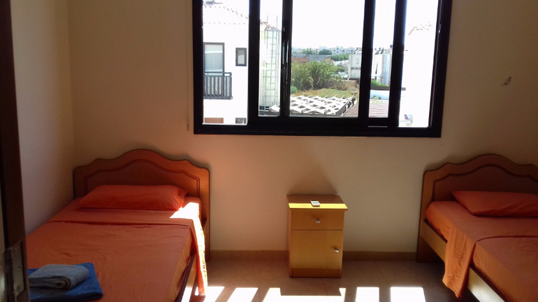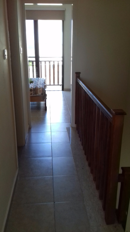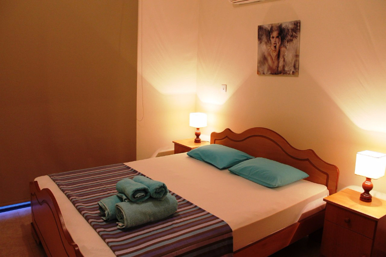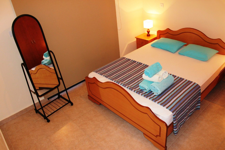 На втором этаже две спальни. В одной двухместная кровать, в другой две одноместные.