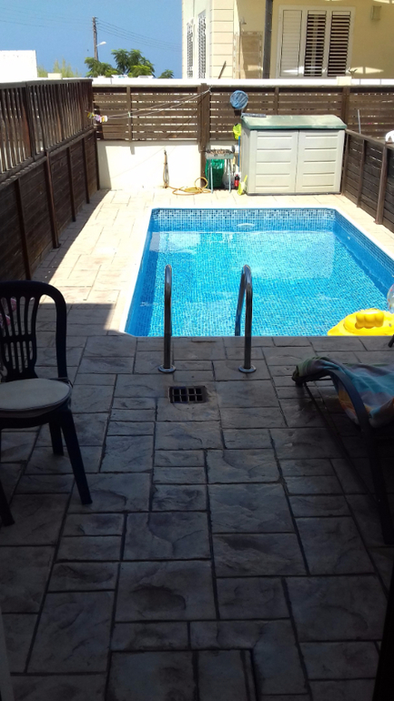 Бассейн 3 х 5 метров, территория вокруг бассейна с лежаками, где Вы можете загорать.