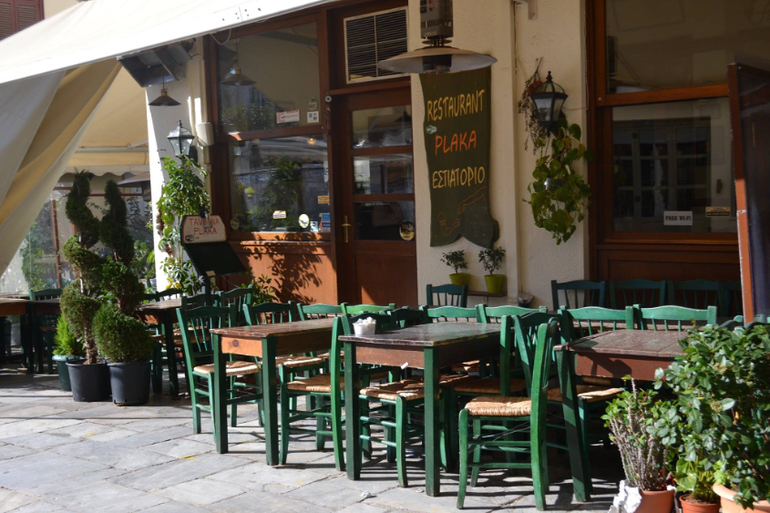 Я люблю Плаку за живописное оформление, уют и атмосферу гостеприимства. Все в зелени, горшочках с цветами...