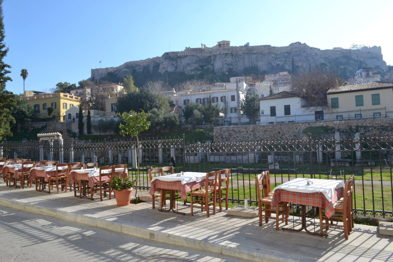 Пешеходная улица Диониса Ареопагиту среди местных величают археологическим променадом. Самая главная достопримечательность высотой 156 метров над уровнем моря- священный холм Акрополя, в переводе с греческого "верхний город".