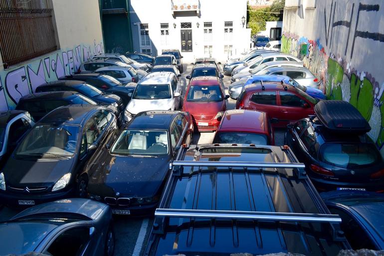 Афины- огромный мегаполис. Проживает здесь около 5 млн человек (неофициально). Согласно статистике, проведенной в 2011 году - 3, 900 млн. чел. Огромная проблема - паркинг. Чтобы его найти в историческом центре, лучше передвигаться либо пешком, либо на мотоцикле. Иначе, такая картина неизбежна :)))