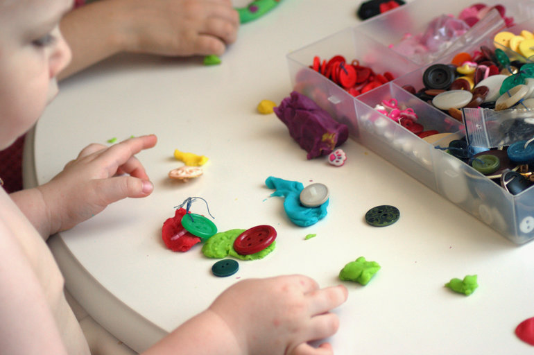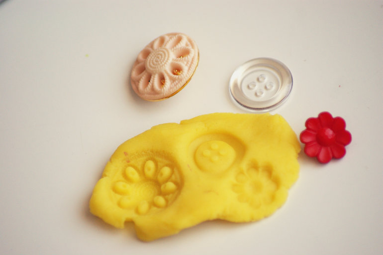 Дети мои довольны)) Выделила им пуговицы - сидели минут 15 делали разные отпечатки) Даже формочки их так не завлекли, как мамина фурнитура))
