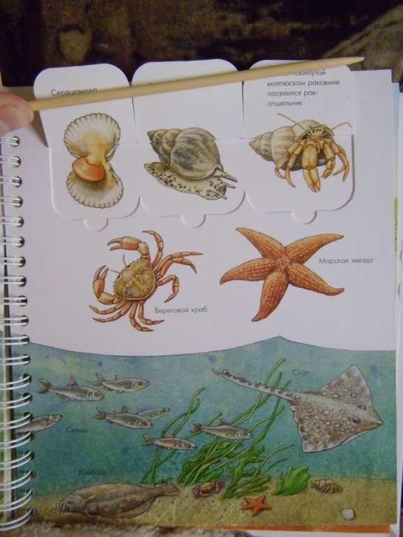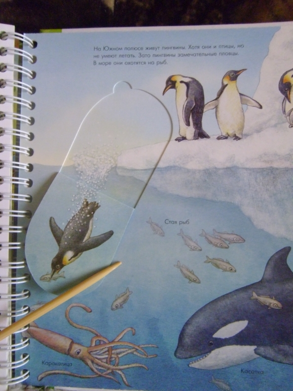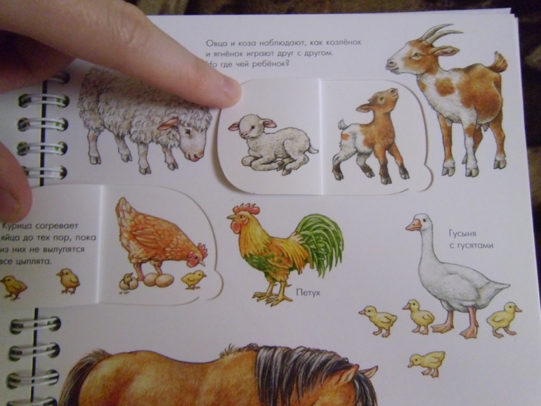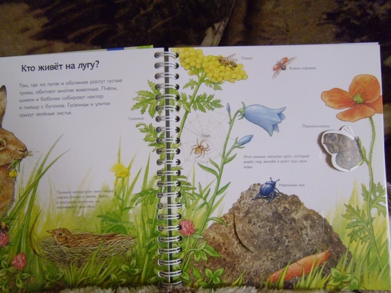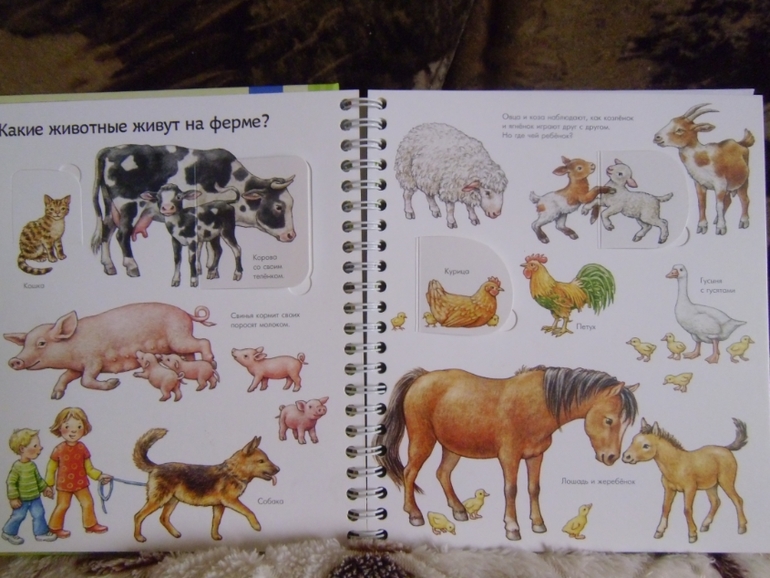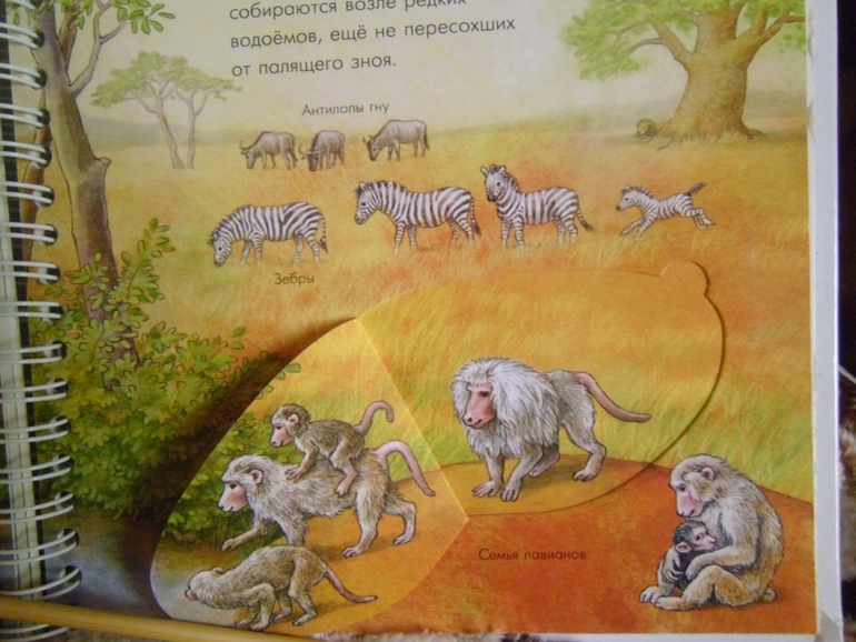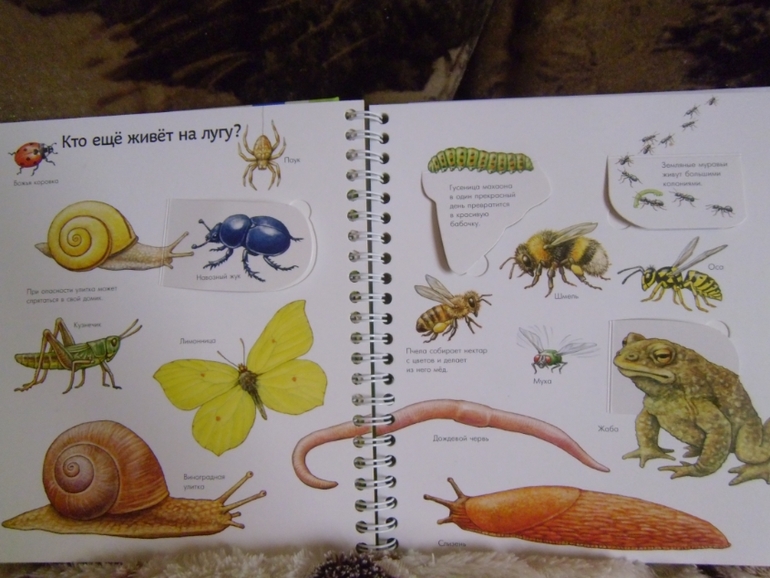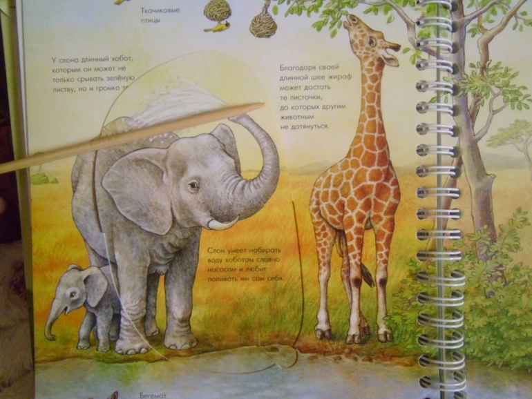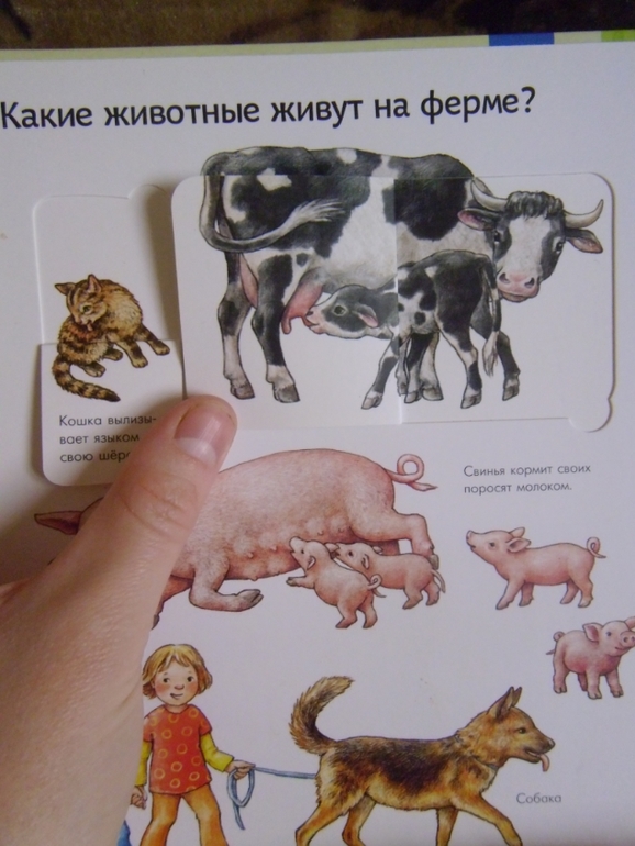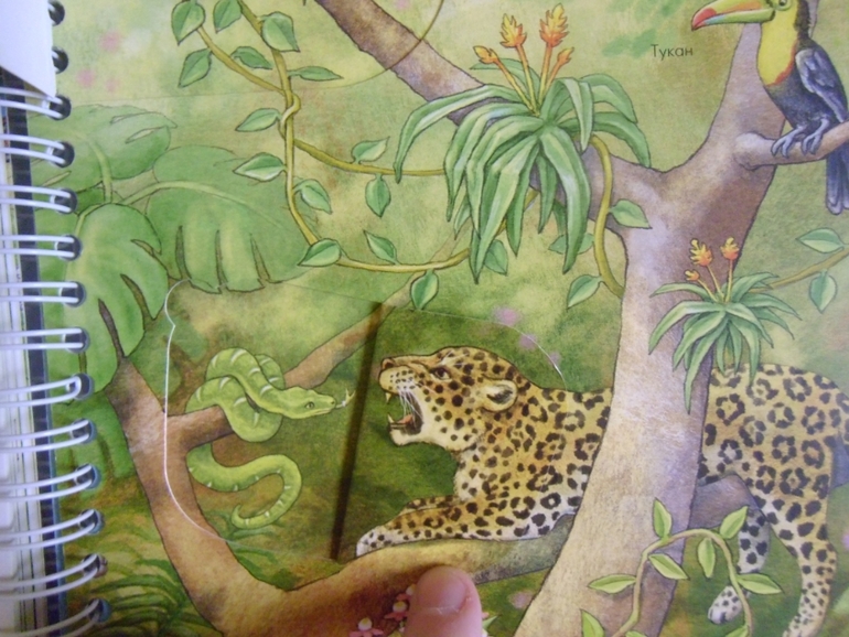 Когда думала купить или нет, отзывов адекватных не нашла.Поэтому достала с верхней полочки фотоаппарат, смахнула с него вековую пыль и отщелкала всю книгу.Она замечательная, толстенькая( целых 24 страницы, в остальных книгах серии -16),ладненькая, в руках держать приятно. Насчет указанного возраста у меня правда сомнения- для моей далеко не гениальной трехлетки открытием были только разноцветные ядовитые лягушки (восторг!!!)и то, что белка живет в гнезде(я тоже удивилась кстати).На мой взгляд, возраст от полутора до 3 лет. Для детей постарше слишком мало информации.