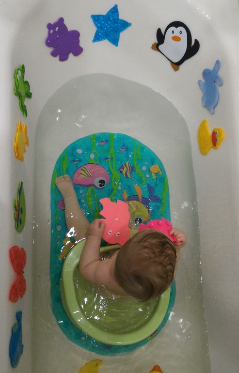 А вот стула хватило на два купания - не интересно в нём было. Так ползает по всей ванной. Но я и купать сразу в большой начала