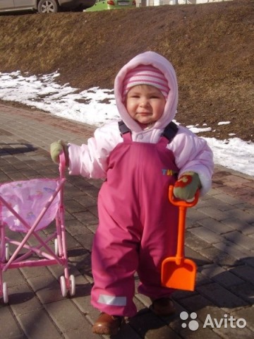 Алисе на год как раз брала аналог - мембрану с утеплителем 80 гр (на самом деле у нас не было утеплителя, а был флисовая подкладка). Лучше брать мембранные, так как они не промокают, а осенью и посидеть на мокрых качелях захочет, и покататься на мокрых горках, и в мокром песке/земле поковыряться. (Можно обойтись и не мембранными комбинезонами, но тогда сверху придется надевать дожевик или резиновый полукомбез - см. ниже)