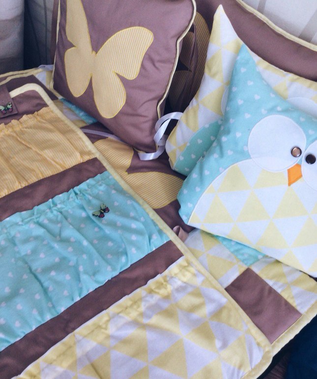 На последнем фото кармашки для всякой мелочевки. Полочек рядом с кроваткой не будет, поэтому попросила сшить карманы😊