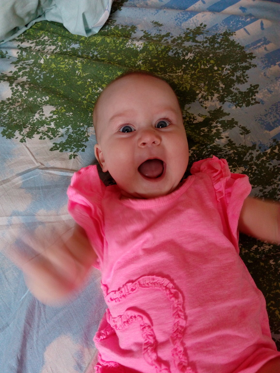 Под настроение лепечет, в основном когда ее что-то не устраивает, хочет есть или спать. Если всем довольна, то разговаривает редко.