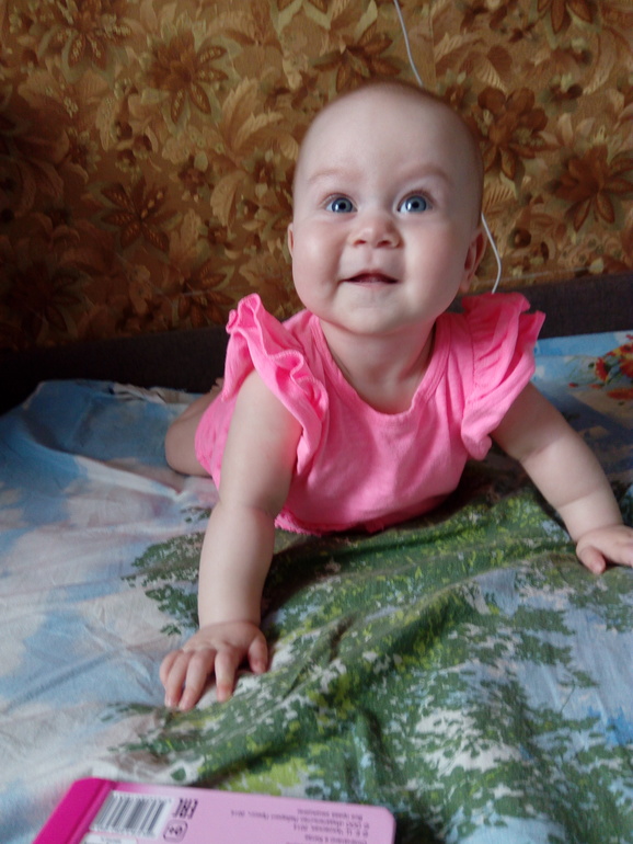 Еще один месяц промчался. Олечка немного ползает, но в целом, ей, похоже это просто неинтересно. За ноутбуком или кошачьими мисками может всю комнату проползти, а так не особо интересуется. На руках ползет, ноги волочит в основном. Пытается садиться из п...