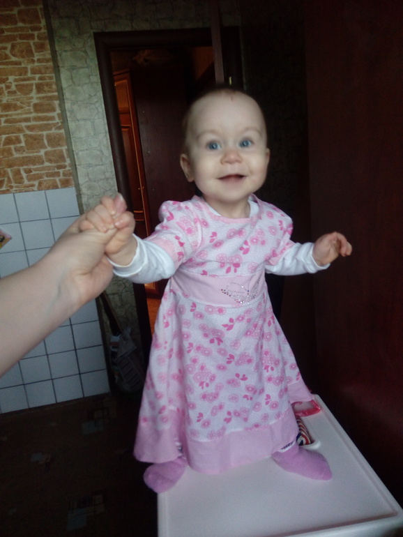 Олечка наконец-то научилась садиться, быстро ползать на четвереньках, вставать у опоры. И даже немного ходит вдоль дивана. Подолгу стоит играет с игрушками. Вот сколько умелок.