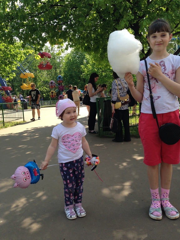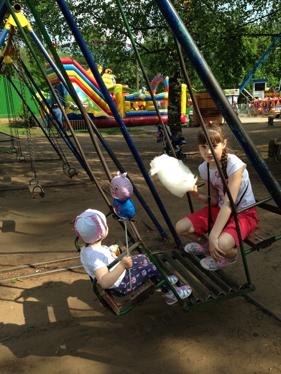 Выбрались немного развлечься с девчонками к Цирку - качели-карусели. У старшей дочки каникулы - окончила нынче 1-й класс, нужно и отдохнуть и провести лето с пользой. Пока отдыхаем, а там целый список книжек читать нужно.