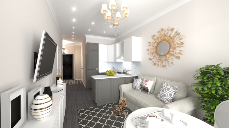 Закончила проект однокомнатной квартиры в ЖК "Савеловский сити", уже приступили к ремонту. Квартира для молодой и успешной девушки с любимым питомцем. Бюджет 1,5 млн. руб. (на отделку и мебель, технику). Приятного просмотра под катом, будут вопросы - задавайте!