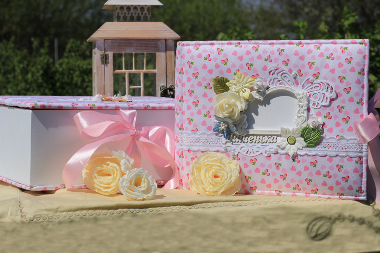 Добрый день мои дорогие сообщницы и гости! Меня зовут Ольга, по образованию я дизайнер, сейчас в декретном отпуске наслаждаюсь материнством. У меня чудесная малышка по имени Милана. На седьмом месяце беременности я решила приобрести альбом для первого года жизни нашей доченьки, но совесть дизайнера не позволила не сделать его своими руками! Пока собирала информацию, просматривала фото и видео на просторах книжных полок и интернета, родилась Милашка. На полгода пришлось отложить эту затею. Но у моей подруги тоже родилась доченька, и я задалась целью во что бы то ни стало, сделать для неё альбом. Побеги в магазины за материалами на пару часов, бессонные ночи, терпеливый и понимающий муж, и альбом сделан! Вдохновение на его создание я черпала из работ Юлии Савельевой. Почти год назад я его подарила)) Наконец настал день, когда я могу выложить его на всеобщий суд.