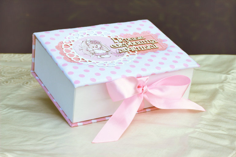Привет, друзья! Представляю Вам милейшую и ми-ми-мишную коробочку для доченьки моей племянницы. Она небольшая 19*15*5см, но вмещает в себя первые и очень важные сокровища будущей принцессы (не зря на обложке горошины) =)